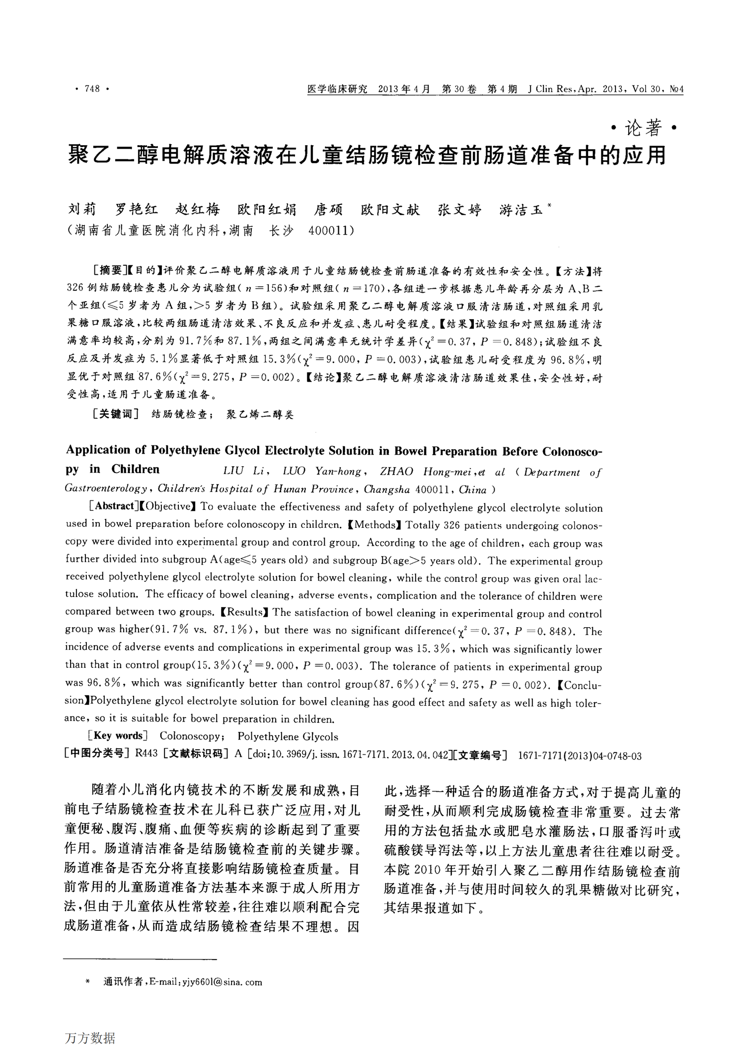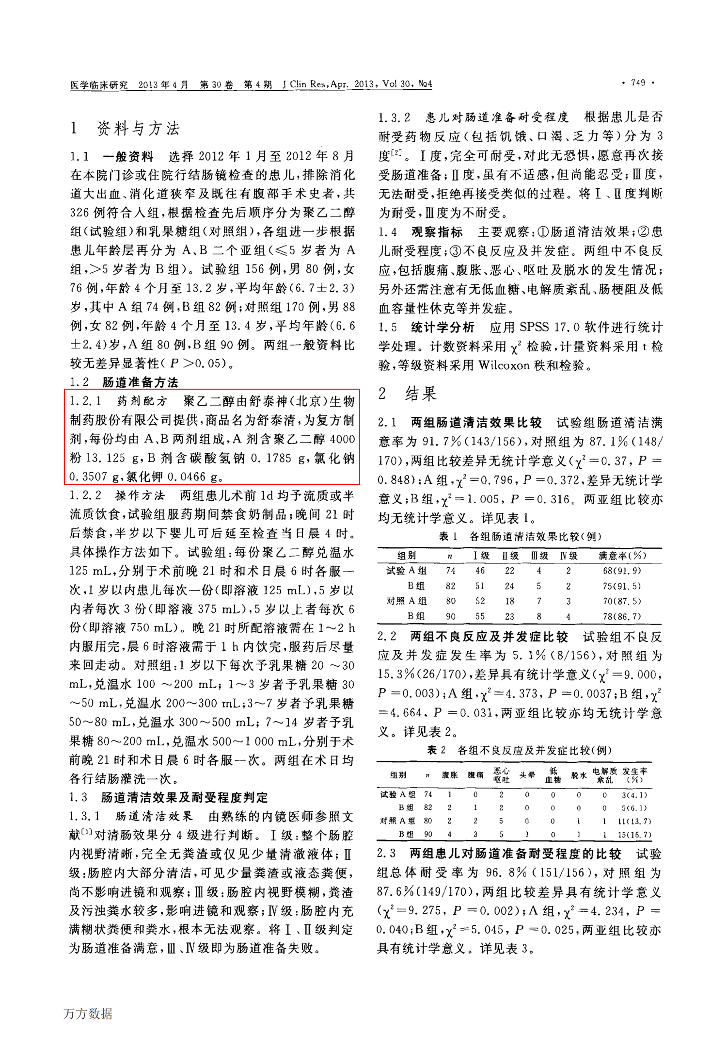 【舒泰清】2013 聚乙二醇電解質(zhì)溶液在兒童結(jié)腸鏡檢查前腸道準(zhǔn)備中的應(yīng)用